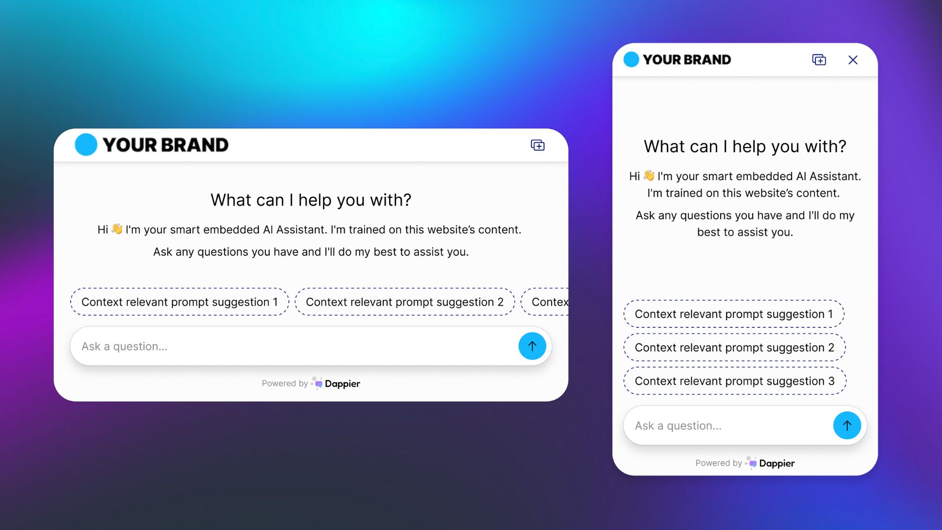 Dappier AI copilots have had a UI overhaul designed to drive engagement. Benefit from an expanded window view and a cleaner UI, driven by your branding.