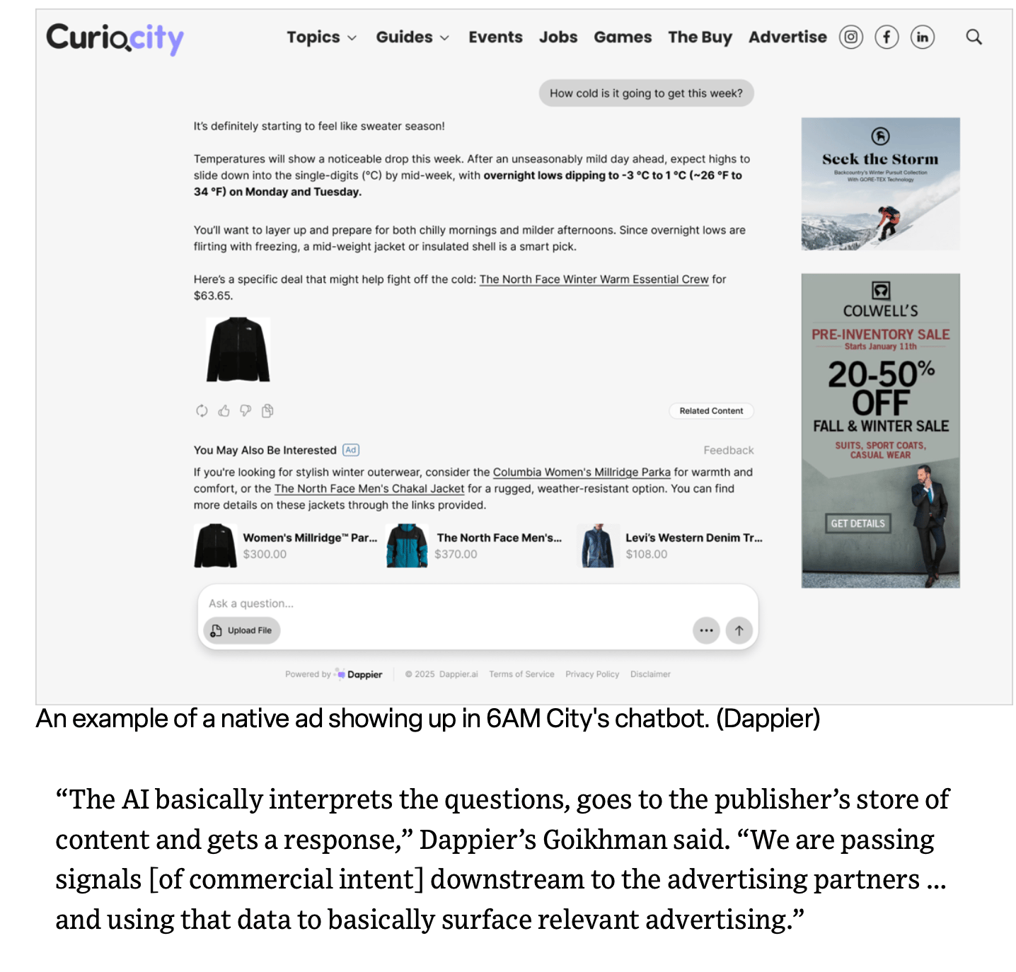 Dappier & publisher partner 6AM City sat down with Ad Age to showcase in-AI ads.